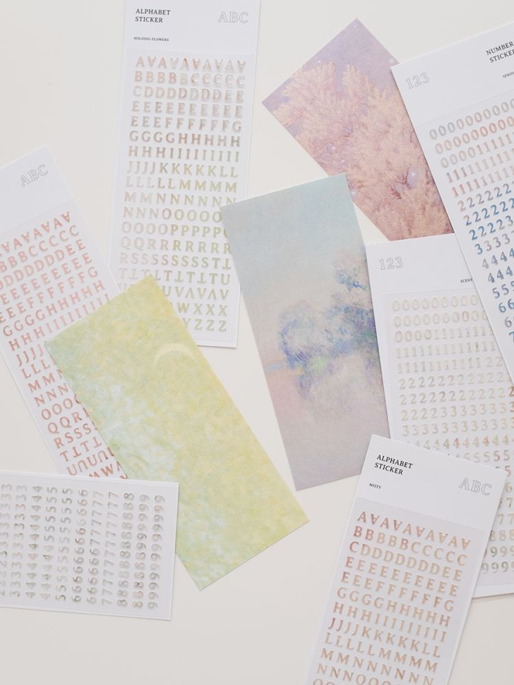 따스하고 나른한 봄의 꿈을 떠올리며 모은 오래된 명화로 알파벳과 숫자 스티커를 만들었습니다.